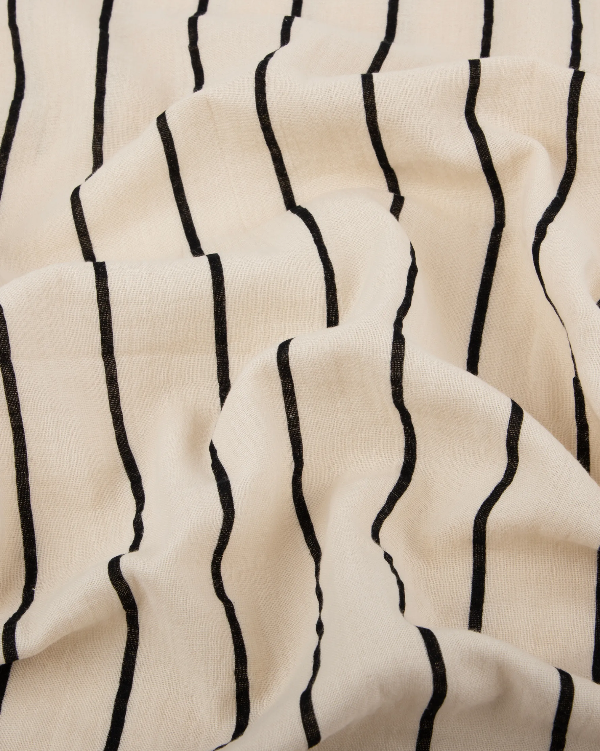 Soft cotton double cloth with hand-drawn black stripes on an off-white base. Comfortable, breathable, and perfect for shirts, dresses, co-ords, kurtas, and minimal everyday wear.