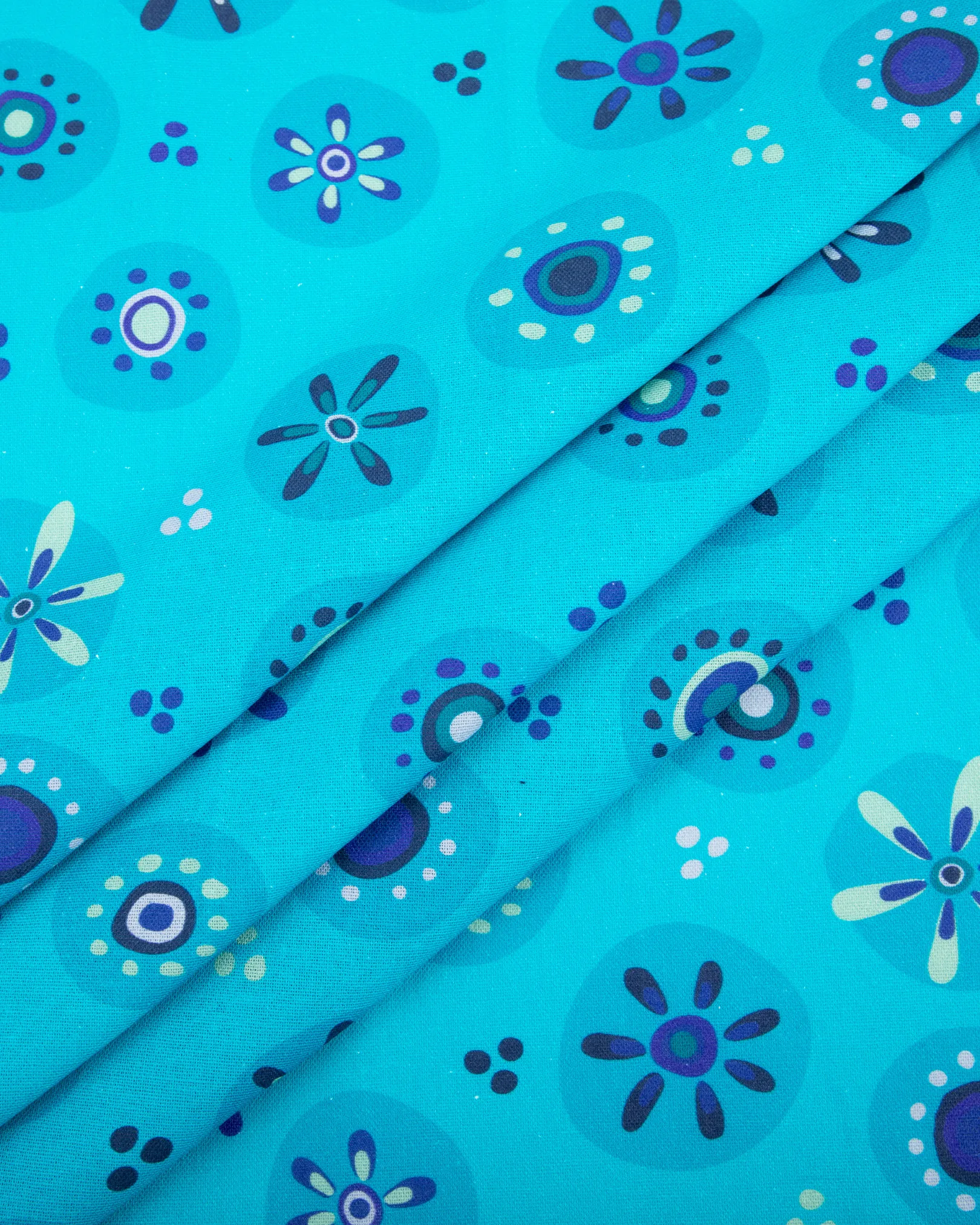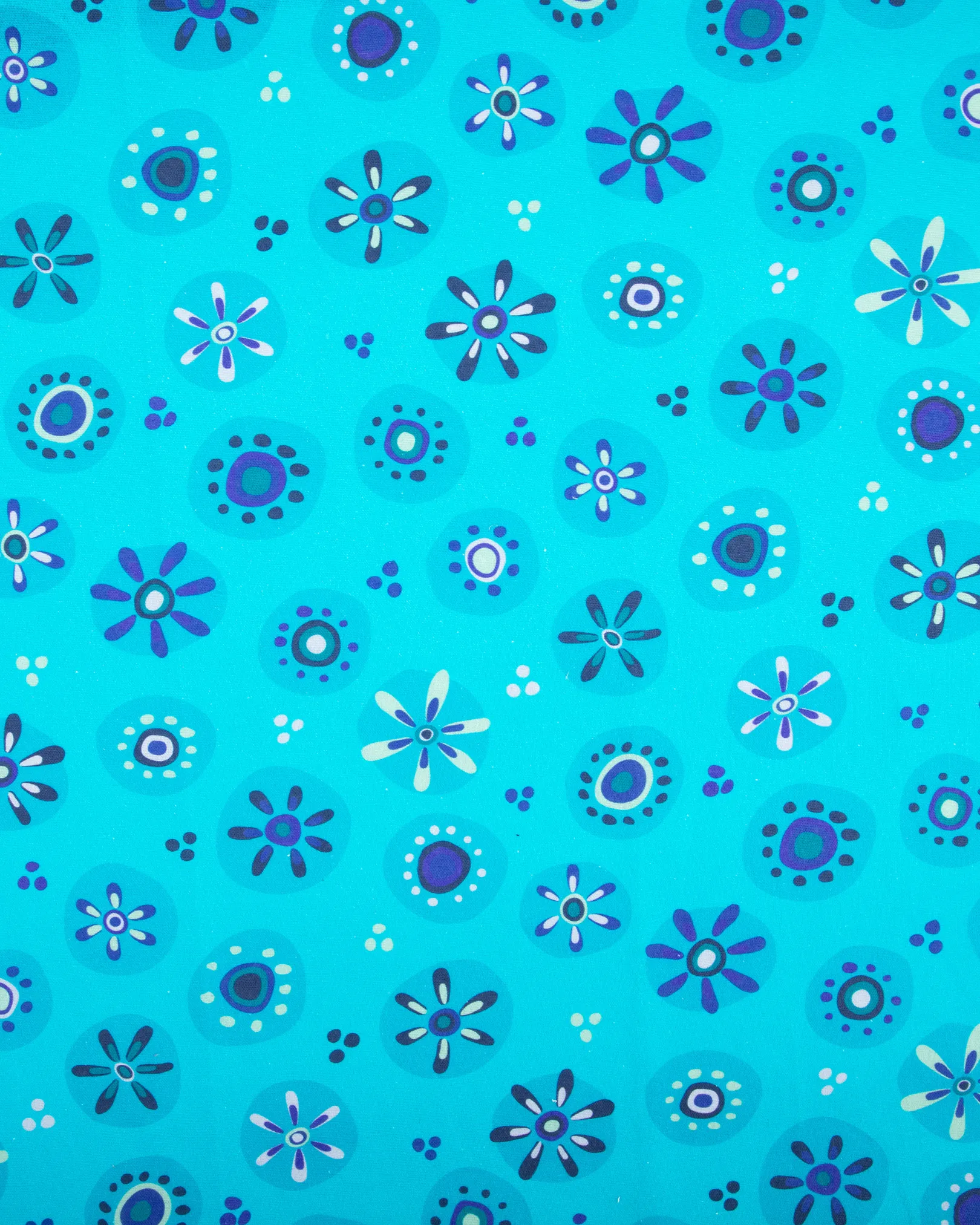 Aqua blue base with retro floral circle motifs
