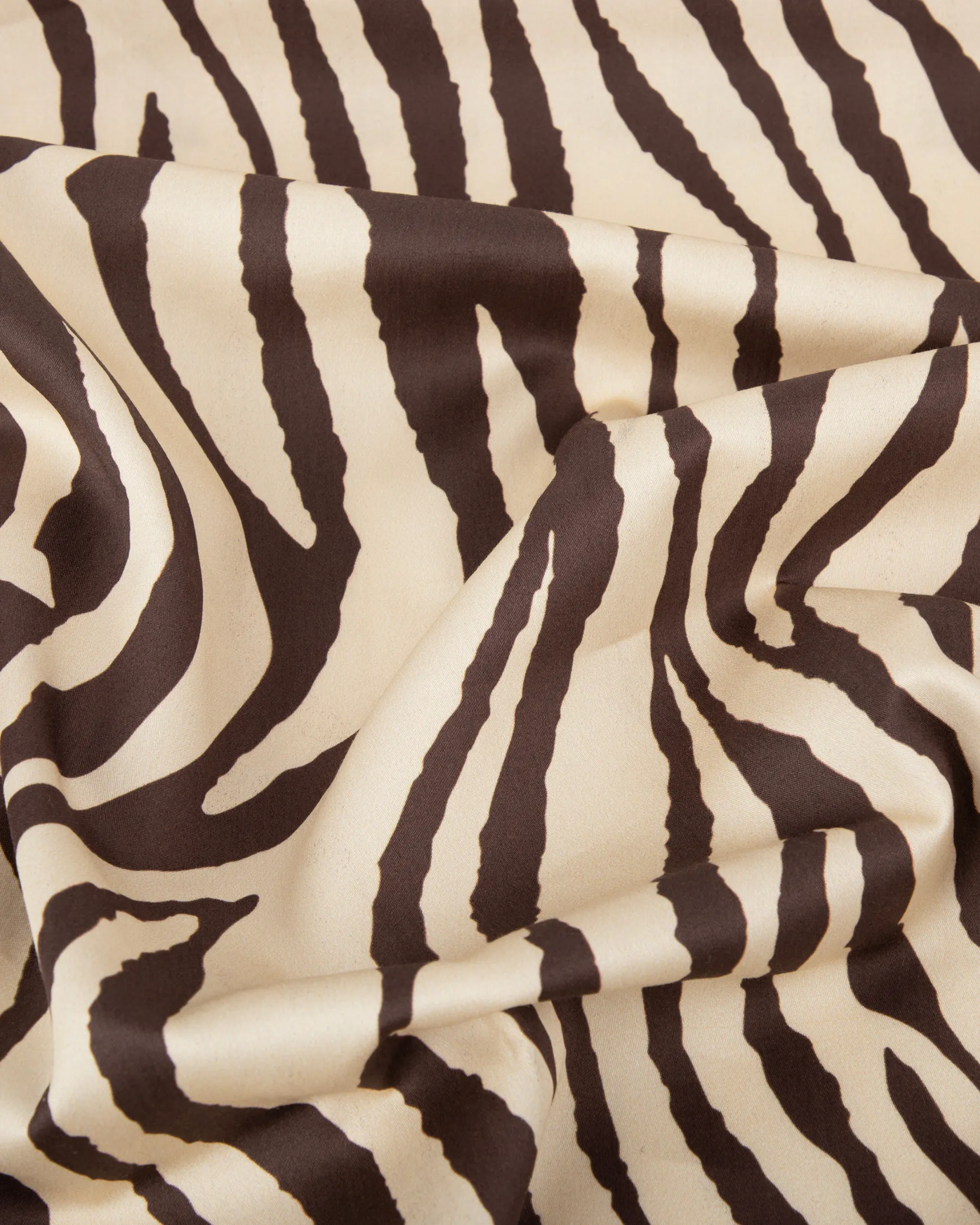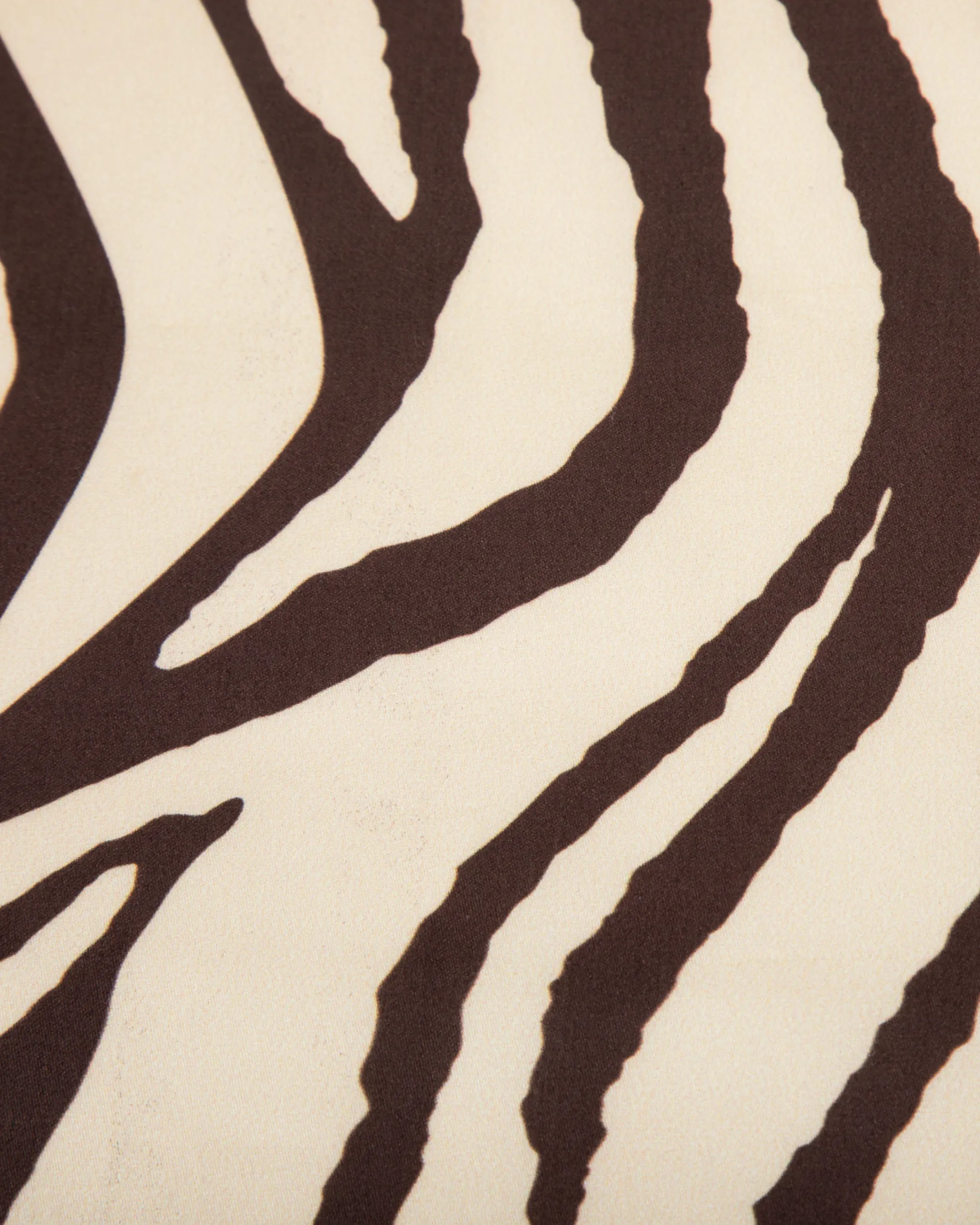 This striking Printed Cotton Viscose features a bold ( zebra-inspired stripe pattern in rich chocolate brown over a soft cream base), creating a powerful yet elegant visual appeal. The flowing organic stripes add a premium, high-fashion touch perfect for statement outfits.