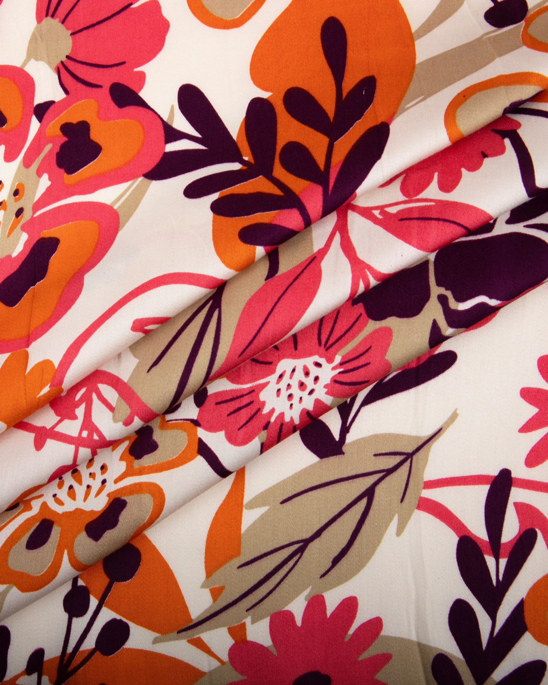 The multicolor floral design featuring pops of pink, orange, purple, and beige – creates a lively, fashion-forward look perfect for standout outfits.