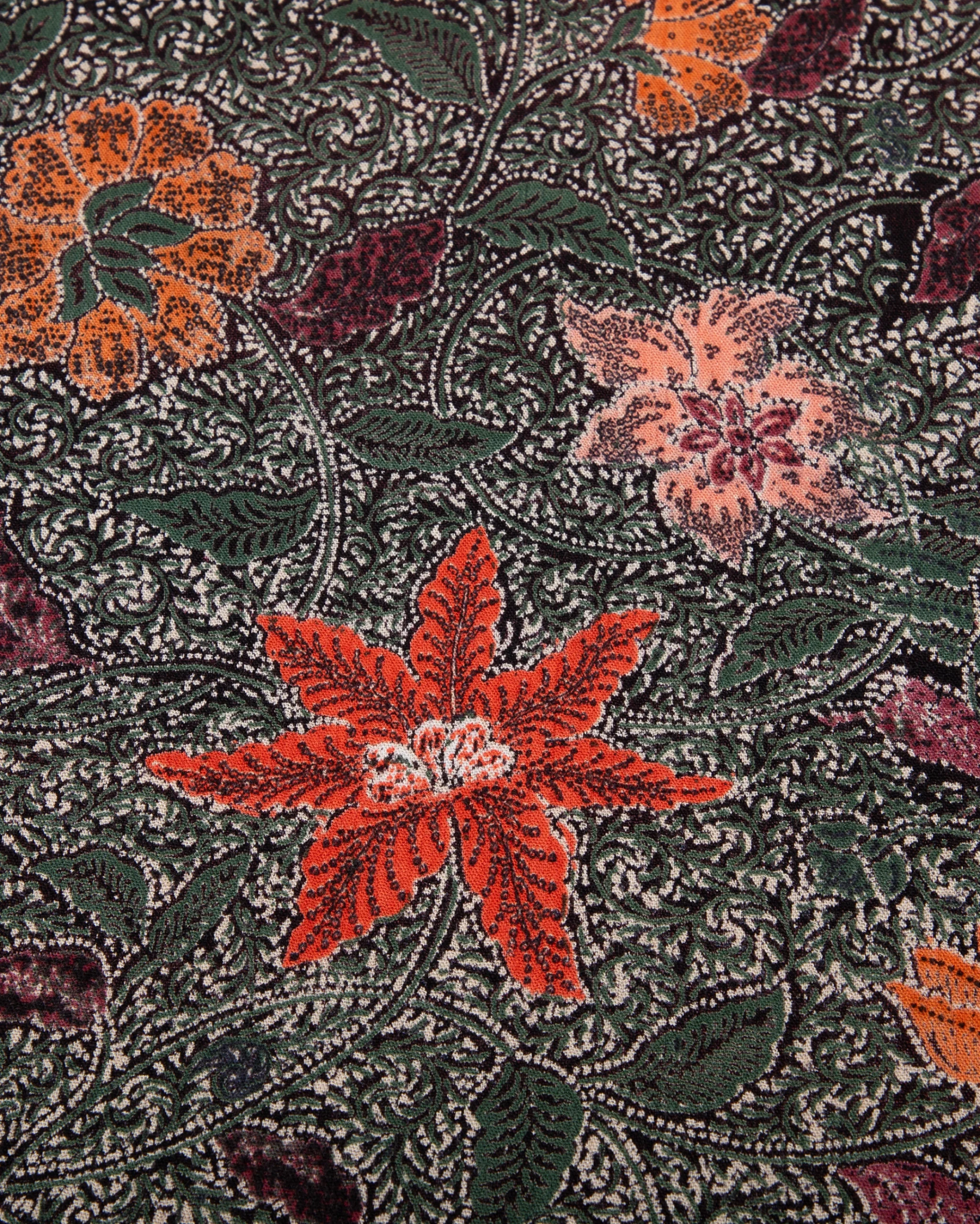 The detailed print and refined drape make it perfect for creating statement garments that blend vintage appeal with modern versatility.